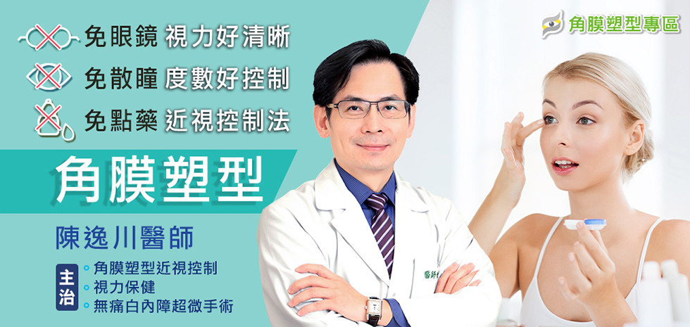 陳逸川醫師致力於眼科醫療多年,承襲診所在白內障超音波吸出術之卓越表現,更引進特殊人工水晶體植入,可達到去除老花眼、消除散光之目的。在學童視力矯正、近視控制方面,率先引進目前衛生署最先核可之近視控制鏡片,提供免點散瞳劑之近視控制方法,在目前快速累積的案例中成效卓著。